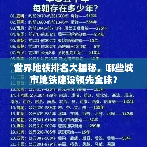 随着城市化进程的加快,地铁已成为现代都市不可或缺的重要交通工具,全球各地的地铁建设各具特色,本文为您呈现世界地铁之最排名,带您领略全球地铁的辉煌成就。