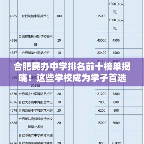 合肥市作为安徽省的省会城市,其教育事业蓬勃发展,其中民办中学也取得了显著的成绩,本文将为您介绍合肥市排名前十名的民办中学,以供参考。
