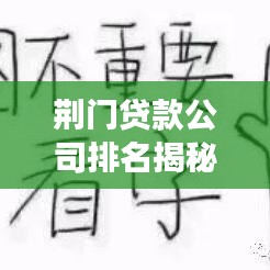 转载请注明来自Multispacecoop 中国清洁常青藤联盟,本文标题:《荆门贷款公司排名揭秘,金融服务行业现状与趋势深度解读》