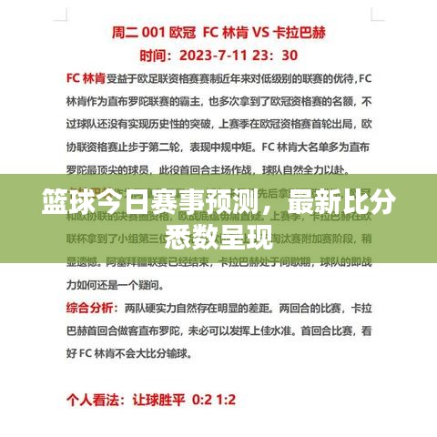 篮球运动是一种充满激情与活力的体育项目,吸引了全球无数球迷的关注,随着科技的进步,球迷们不再仅仅满足于观看现场比赛,更希望能够了解比赛的最新动态和结果,本文将围绕“篮球今日推测最新比分”这一主题展开,带您一探究竟。