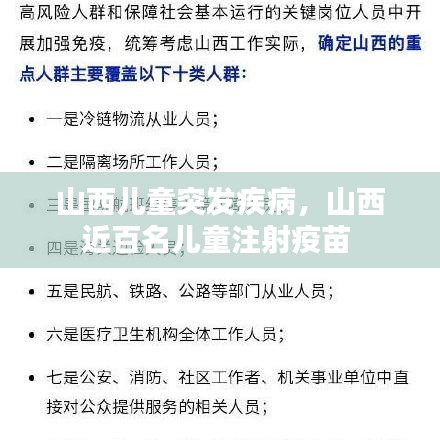 近日,山西省发生了一起儿童突发疾病的紧急事件。这起事件引起了社会各界的广泛关注,尤其是家长和医疗机构。据报道,自本月起,山西省多个地区陆续有儿童出现不明原因的发热、咳嗽、乏力等症状,部分病例甚至出现呼吸困难、抽搐等严重症状。